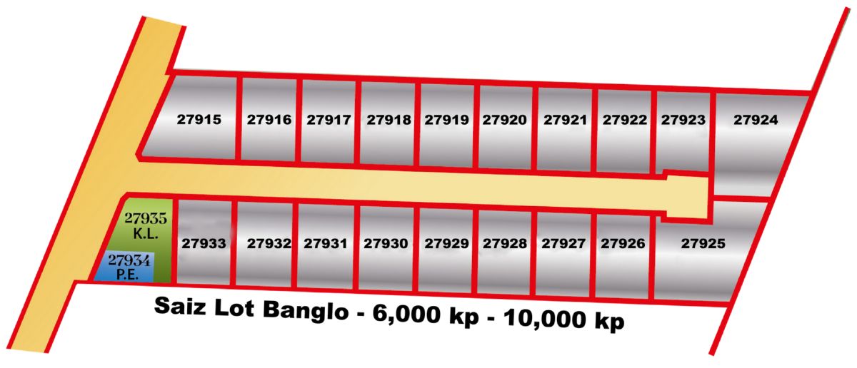 - Saiz lot tanah dari 6,000kp - 10,000kp